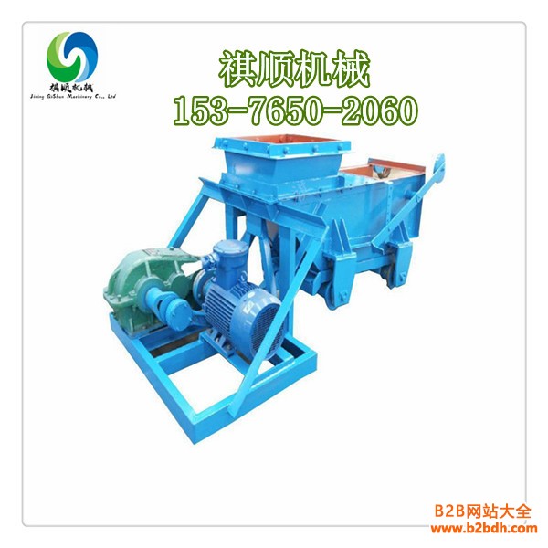 K型给料机由机架、底板(给料槽)、传动平台、漏斗、闸门、托辊组成,当电机开动后经弹性联轴器,减速机、曲柄连杆机构拖动倾斜5度的底板,在辊上作直线往复运动,把煤或其它磨琢性小,粘性不大的松散粒状,粉状物料从给料设备中均匀地卸到受料设备中