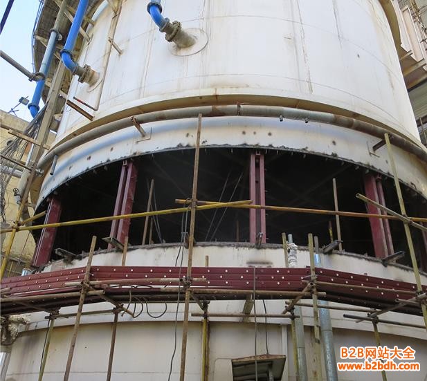 下降时,如果有一、两个液压缸不工作,其他液压缸都下降,数倍的负载集中在这个不下降的液压缸上,系统就会出现危险。现在,储罐倒装法施工采用的是先提升后围板的施工顺序,罐体整体下降操作时具有较大的危险性。因此,要求液压缸在上升和下降操作时,液压系统具有超压溢流的功能,称其为“软性能”。带液压锁的储罐液压提升设备,有时会出现钢丝绳断裂的事故,曾今有一次在下降过程中,连续断了七根钢丝绳,原因就是下降操作时,液压锁打开有先后,荷载分配不均匀,钢丝绳断裂后载荷再次变化而引起连锁反应。松卡式液压设备也是同样的原理,在下降操作时都会出现载荷分配的极端不均衡。所有这些额外的负载是通过系统的安 全余量来承担的,一旦超出较大载荷,就会有事故发生。