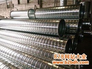 除尘螺旋通风管道的接缝处是轴向的,接缝处的抗压强度比轴向的直缝抗压强度要高很多,因此能保证在1.5倍压力下接口处无开裂,因为其原料镀锌卷板与一整张镀锌板比照,价格较低,再加上其规模化生产和标准的规范性,促使工程造价要比矩形框风管低;别的因为其支、支架需量少,设备劳动量少,因此固定成本较低。因为矩形框风管的四角易产生渗流,减少了载流总面积,气体流通性好,载流总面积大,因此产品的二次噪音小,因为其抗压强度大。