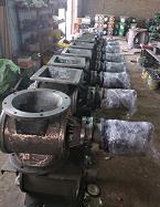 卸灰阀的法兰接口方式主要有两种,方口为A型,圆口为B型。也可根据客户要求定做长方形及其他异形规格的卸料器。卸料器常用在气力输出系统中,用于压力输出系统或负压输出系统,卸料器以均匀,连续地向输料管供料,以保证气力输出管内的气,固体比较稳定,从而使气力输送能正常工作。同时,又能将卸料器的上,下部气压隔断起到锁气作用。因此,卸料器是气力输送系统中常用的重要部件。卸料器是除尘器密封卸料的专用装置,它能连续不断排料及把物料输送到指定装置内,对多种物料均可应用。卸料器耐温型它所输送物料的温度可达280°C两端轴承与叶轮有一定隔离,能防止粉料与轴承接触。卸料器输送物料的温度可达500°C,采用链轮连接,减速机和卸料器壳体有一定的间隔。