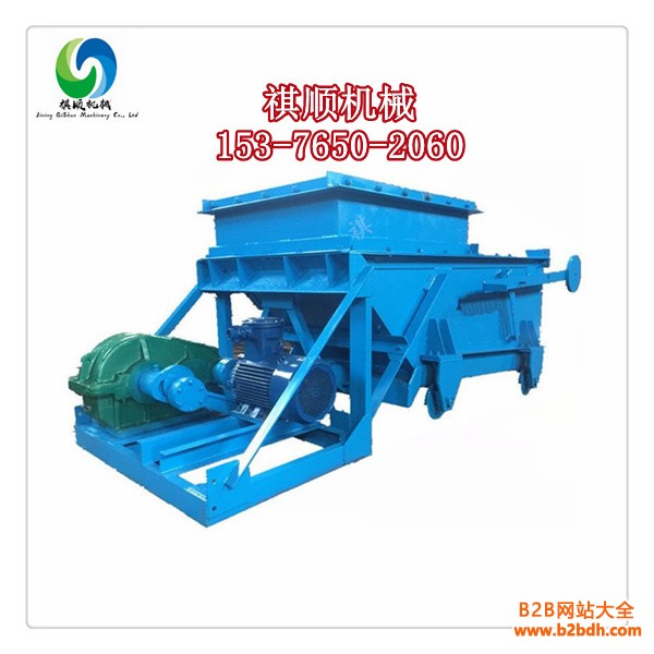 K型给料机由机架、底板(给料槽)、传动平台、漏斗、闸门、托辊组成,当电机开动后经弹性联轴器,减速机、曲柄连杆机构拖动倾斜5度的底板,在辊上作直线往复运动,把煤或其它磨琢性小,粘性不大的松散粒状,粉状物料从给料设备中均匀地卸到受料设备中